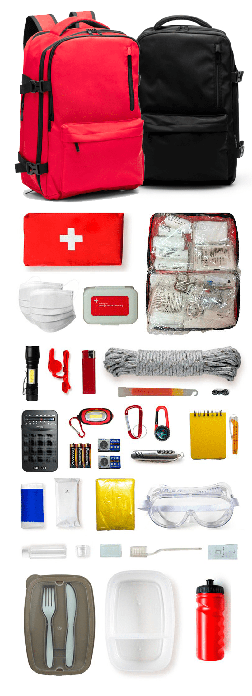 Mochila de Emergência Impermeável com 4 kits de emergência